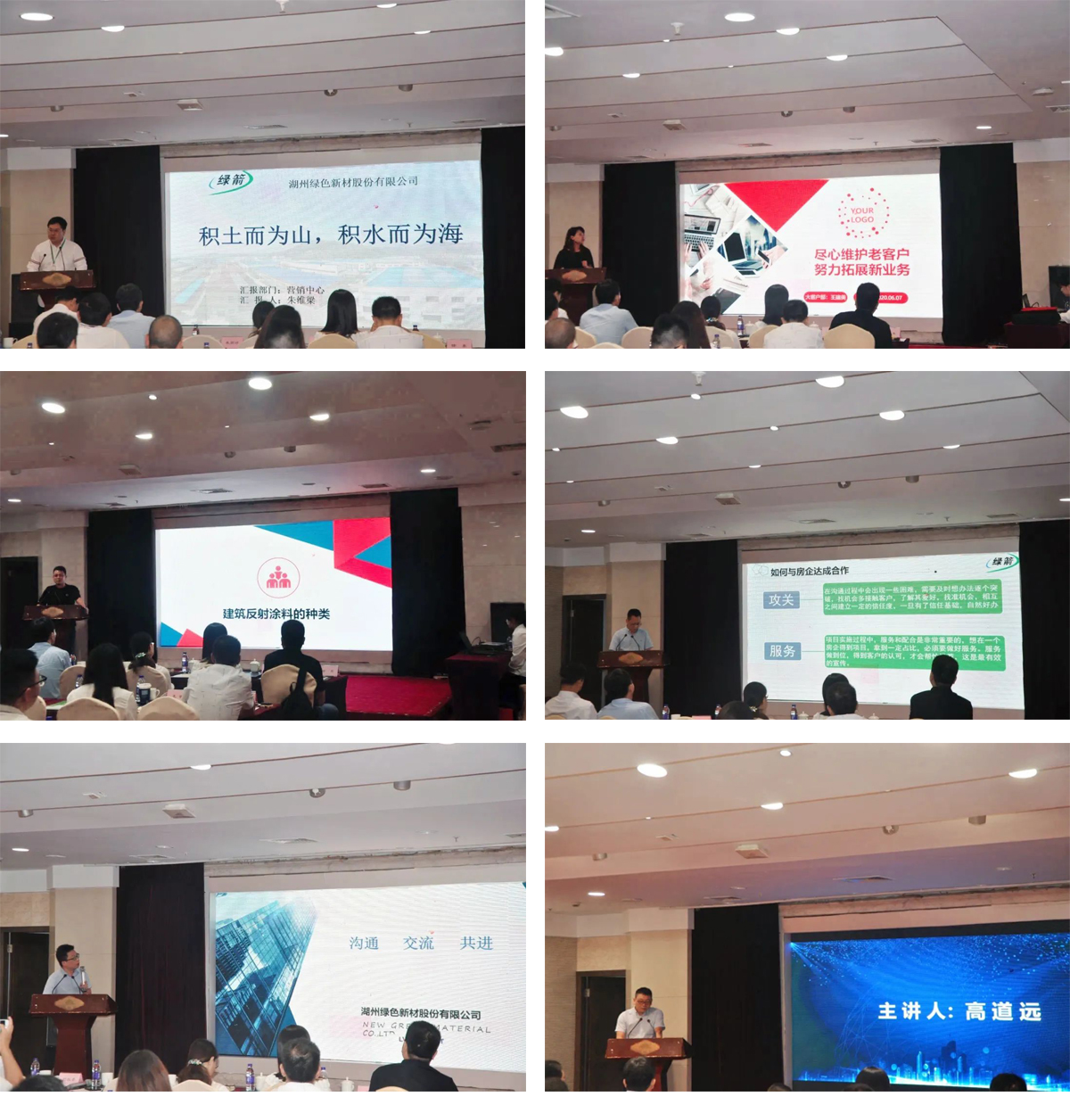 此次產品研討會主要圍繞三部分開展。第一部分為公司發展及產品介紹;第二部分為銷售精英做銷售技巧及產品知識交流分享;第三部分為總經銷商簽約、授權儀式。大家一同跨過時間的門檻,滿懷喜悅迎接一場對綠色新材產品推動建言獻策的會議。