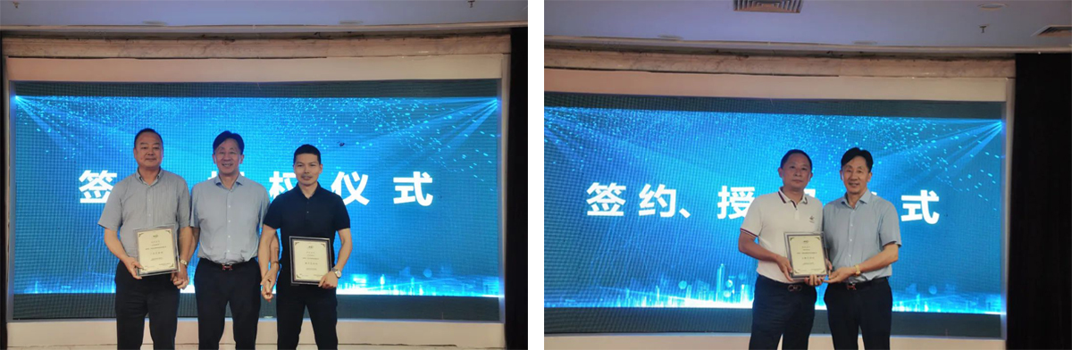 朱士榮董事長向安徽杭霸新材料科技有限公司、寧波信步新材料科技有限公司、杭州祥宸科技有限公司頒發總經銷授權證書。
