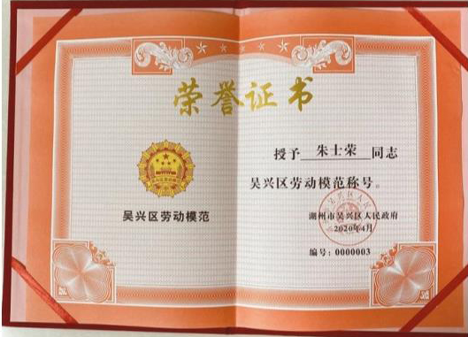 熱烈祝賀綠色新材董事長朱士榮榮獲“吳興區勞動模范”榮譽稱號